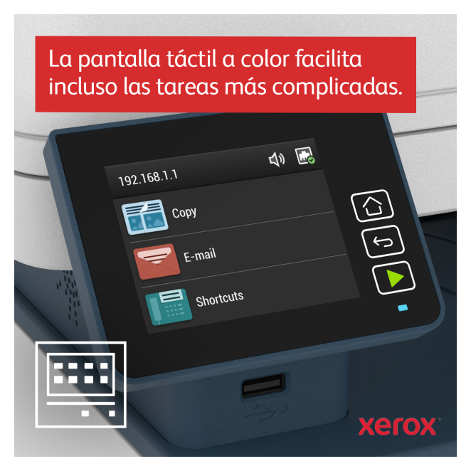 La Xerox B235 A4 ofrece una excelente usabilidad gracias a su pantalla táctil a color LCD de 2.4 pulgadas y su interfaz intuitiva. Permite una configuración rápida y sencilla, y su conectividad Wi-Fi facilita la impresión desde dispositivos móviles. Los usuarios destacarán la alta calidad de impresión y la velocidad, así como la capacidad de realizar tareas múltiples sin problemas. Su robusto diseño asegura durabilidad, siendo una elección óptima para aquellos que buscan eficiencia y calidad en un solo dispositivo.