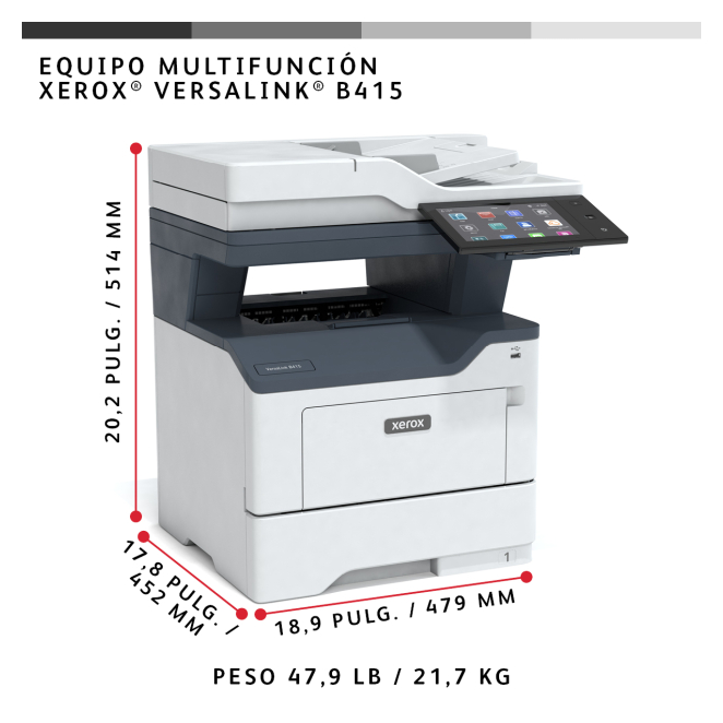La Xerox VersaLink B415 ofrece múltiples beneficios que harán que su entorno de trabajo sea más eficiente: