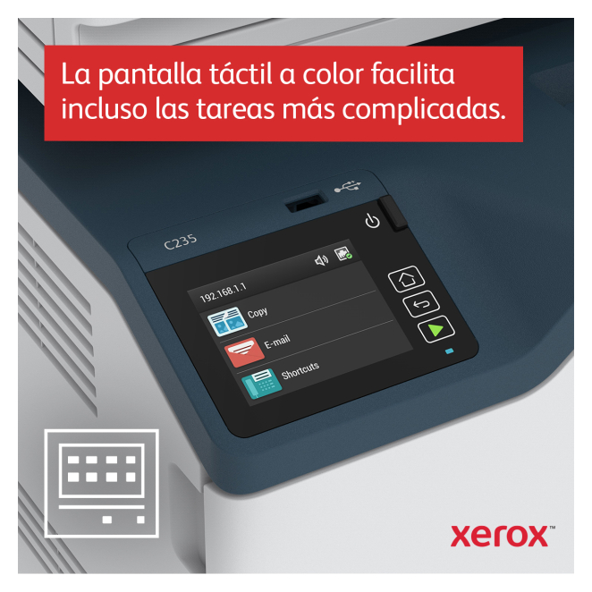 Usar el Xerox C235 A4 22 ppm Inalámbrica es una experiencia sin complicaciones gracias a su interfaz de usuario intuitiva y pantalla táctil en color de 2.8 pulgadas. La configuración es sencilla con el software Smart Start de Xerox, y está listo para funcionar prácticamente desde que sale de la caja. La capacidad de imprimir desde cualquier dispositivo móvil aumenta la comodidad y flexibilidad, mientras que su alta capacidad de papel y velocidades de impresión aseguran que no se detendrá por falta de suministros. Además, su eficiencia energética certificada por EPEAT es un punto a favor para aquellos preocupados por su impacto ambiental.