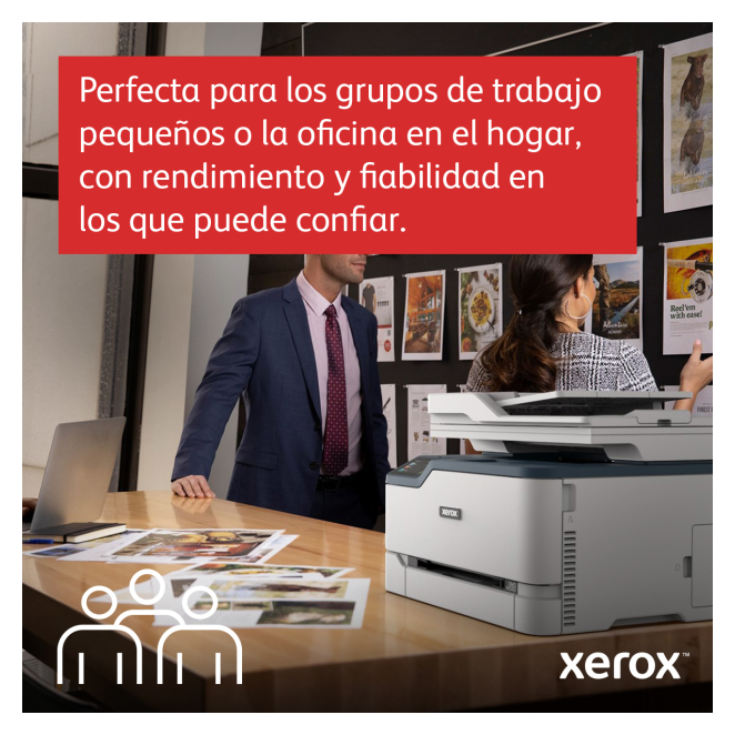El multifuncional inalámbrico Xerox C235 es perfecto para oficinas pequeñas y medianas, así como para oficinas hogareñas que necesiten un equipo que se adapte a un entorno de trabajo dinámico. Profesionales autónomos, pymes y usuarios domésticos encontrarán en este equipo una solución adecuada para todas sus necesidades de impresión y escaneo, con su fácil configuración y alta capacidad de procesamiento. La impresora Xerox C235 es particularmente útil para aquellos que necesitan realizar tareas variadas como la impresión de documentos, escaneo de archivos y envío de faxes, todo en un solo dispositivo.