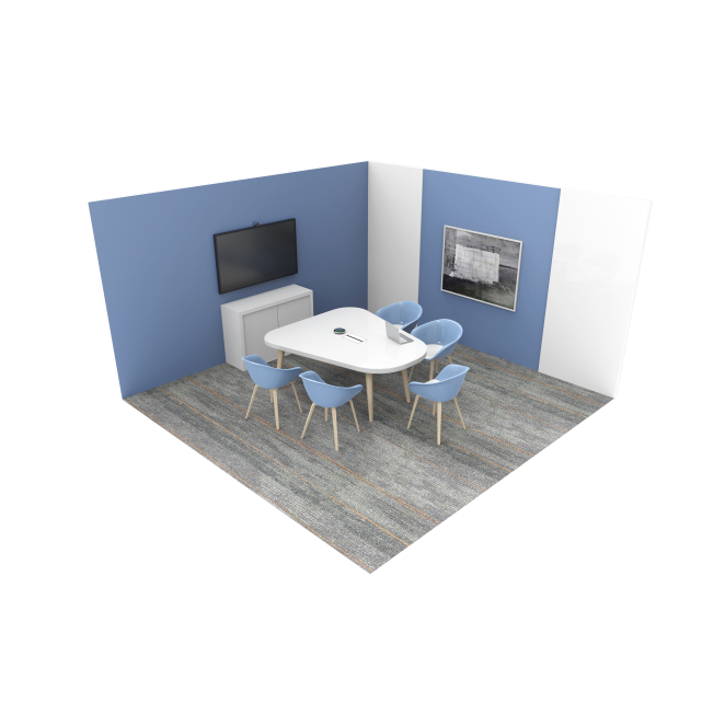 Este sistema está diseñado principalmente para salas pequeñas, donde su lente gran angular de 120° y video en 4K pueden captar claramente a todos los participantes.