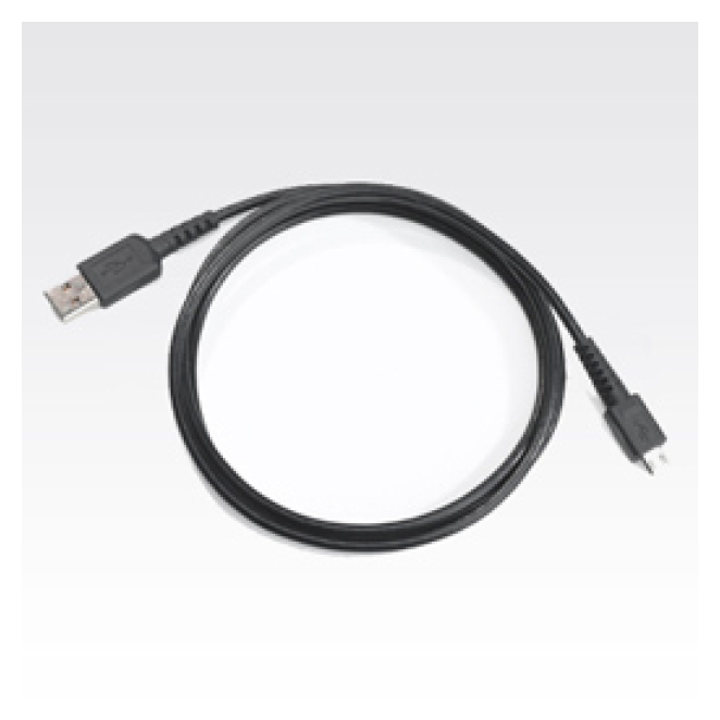 Imagen del Motorola Micro USB sync cable en color negro, compatible con varios dispositivos. SKU: 25-124330-01R.