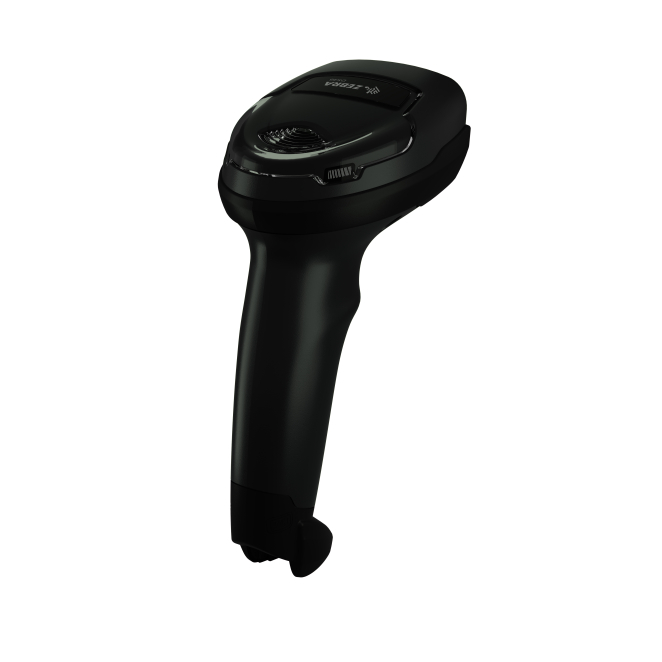 Imagen del lector de códigos de barras portátil Zebra DS4608 en color negro, con tecnología de escaneo 1D/2D y luz LED, SKU DS4608-HD7U2100SGW.