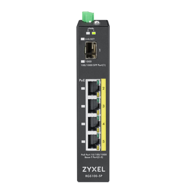 Zyxel RGS100-5P No administrado L2 Gigabit Ethernet (10/100/1000) Energía sobre Ethernet (PoE) Negro